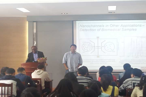首先,Uchechukwu Wejinya副教授详细地分析了纳米材料传感器的发展现状。他指出,纳米材料在传感器中的应用还只是刚刚起步,纳米材料具有独特的气敏、压敏、湿敏,热敏等功能,若将纳米材料应用于传感器,可引发一场传感器工业的革命。接着,Wejinya副教授又对纳米材料在传感器中的应用作了更为详细的报告。他提到,由于纳米材料的高比表面积、高活性、特异物性、微小性等特征与人们对传感器的要求,如多功能化、微型化、高速化等相对应,因此传感器是纳米材料可能利用的最有前途的领域之一。而纳米材料传感器亦可应用于其他诸多领域,如生命医学、机械精加工、化学测量和国防高科技等,因此纳米材料传感器对提高世界工业实力具有很大的推动作用。