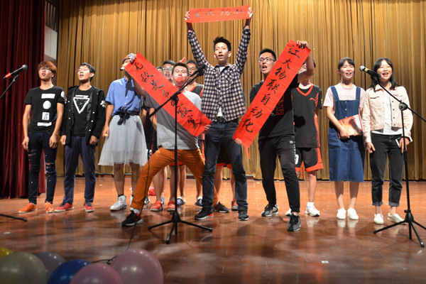 在学院楼举行,三位老师和七位学生组成的节目评审团根据各班级的综合表现打分,并按照最终的得分结果筛选出10个节目进入决赛,争夺在迎新晚会上表演的机会。