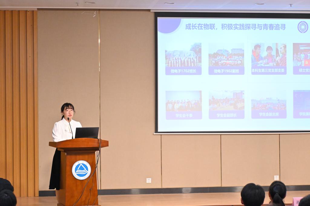 本次评选活动经学生自主申报、材料审核筛选、初赛展示遴选等环节,从本、硕、博群体中共计产生15位“物联之星”候选人进入决赛展示。他们中有学习标兵、学术先锋,有科创达人、竞赛精英,有实践强旅、党团模范,有自强之星、爱心大使,涵盖“学习”“实践”“励志”“文体”四大类别。决赛现场,各候选人以精心准备的PPT展示呈现自身硬核实力,用感触颇深的实践经历传递优秀成长经验。时世骏“勤能补拙,厚积薄发”,以本科生第一作者发表中科院一区SCI论文(影响因子8.6),用自己的梦想诠释一切皆有可能;朱文青“因为热爱,所以坚持”,连续两年打破全国大学生智能汽车竞赛学校最好成绩;霍雷霆“愿以温柔待花开”,用一年的支教之旅为山里孩子埋下梦想的种子,也为自己根植“小我”融入“大我”的情怀担当;齐子时不仅全面发展,还用一篇全文2.7万字、全网阅读量8万+的《av片
