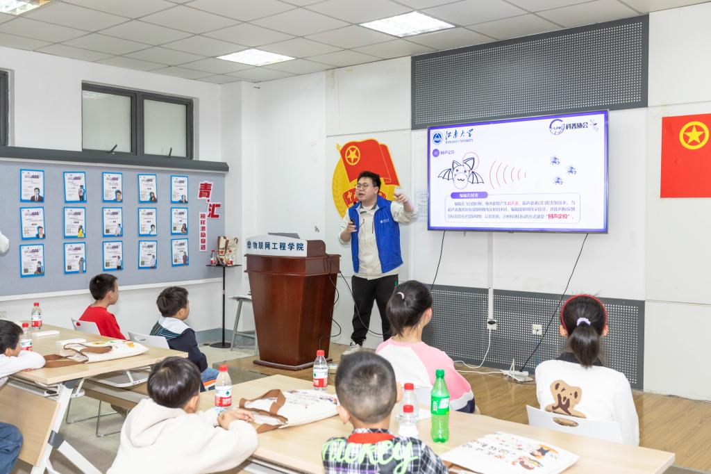 物联网大学生创新实践基地是此次研学的亮点。“小博世”们在电子设计俱乐部亲眼见证了电路板在智能系统中的重要作用,感受到电学的魅力。“这些小车为什么会沿着黑线行走?”“它们如何感知到颜色的差别?”“这些代码分别起到了怎样的作用?”在物联网创新应用俱乐部和智能车俱乐部中,“小博世”们发出了不少疑问。讲解员耐性地为他们解决了疑惑。在不断的交流互动中,“他们汲取科学知识,感悟创新精神,科学思维得到了极大的提升。