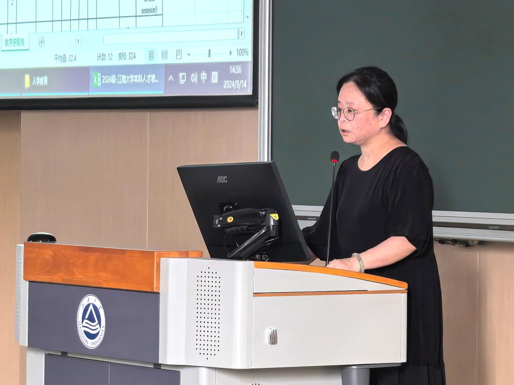 学籍管理规定》与《专业培养方案》,通过一系列鲜活且贴近实际的案例,将复杂的条款变得易于理解,让新生们对学校的学籍管理政策有了直观而深刻的认识。孙洁还特别强调了本科生学习指导手册的重要性,她详细解析了手册内容,并提醒同学们要严肃对待学习,认真选课,合理规划学习进度,以便顺利完成各项学习任务。