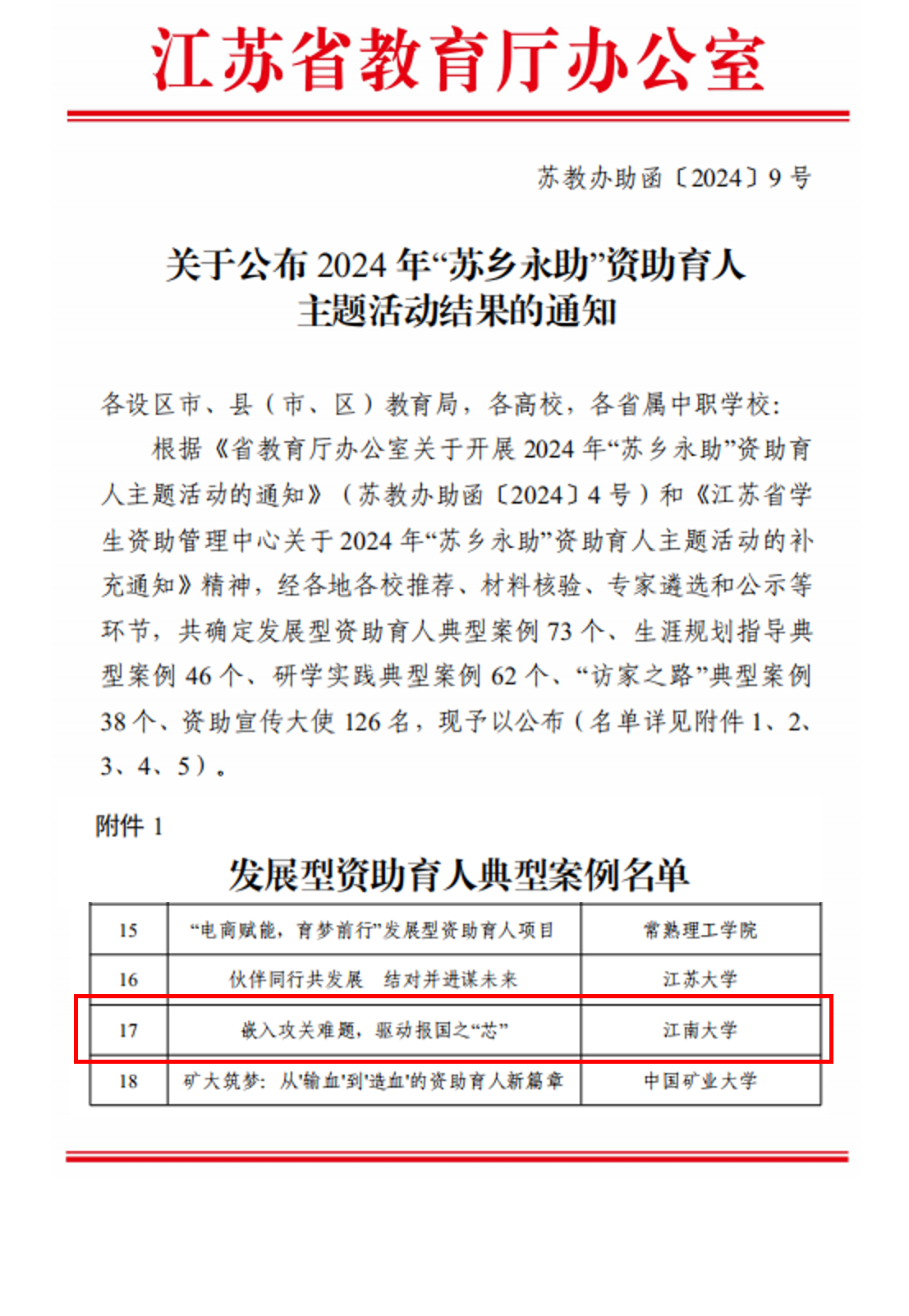 日前,江苏省教育厅组织开展的2024年“苏乡永助”资助育人主题活动评选结果公布,av片