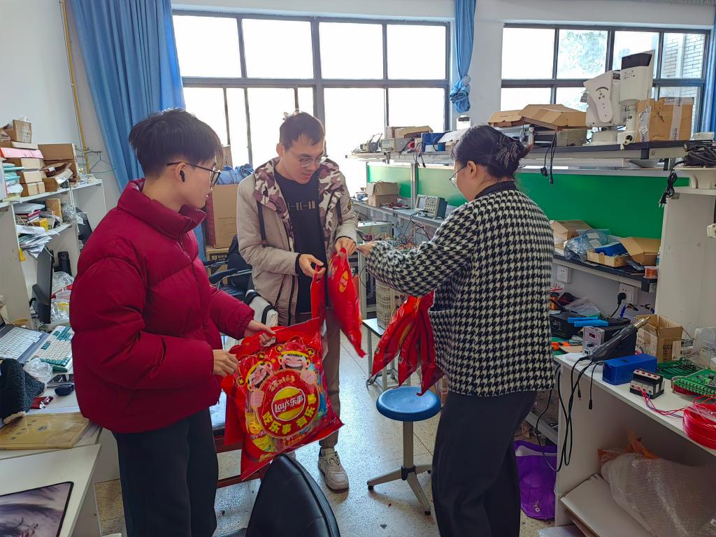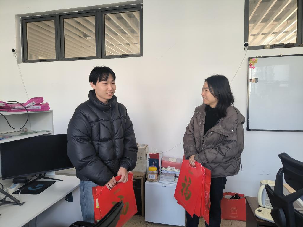 新春将至,岁寒情暖。为了让留校学生感受到家的温暖与学院关怀,1月21日上午,av片 组织开展春节慰问留校学生活动。学院党委副书记兼副院长吴妍、学工办主任洪筱等一行走访了学生宿舍、实验室及大学生创新实践基地,为留校学生送去新年问候和美好祝福。
