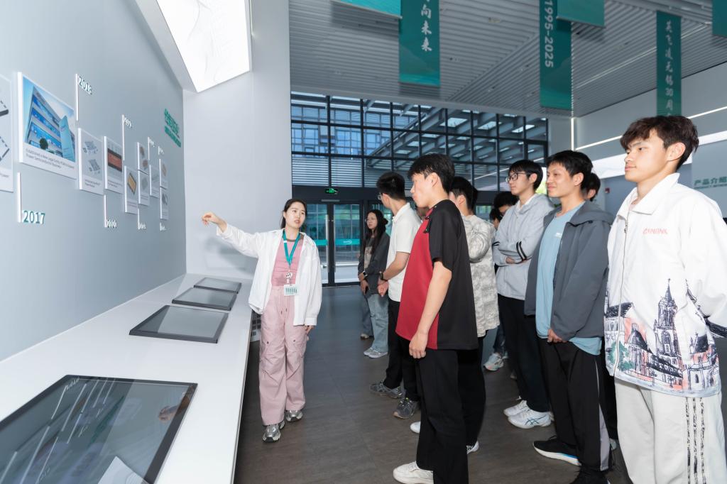 企业代表带领师生们参观公司厂区