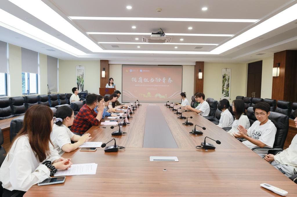 于B222报告厅举办“挺膺担当励青春”2025年暑期社会实践策划大赛。学院分团委书记、学工办主任洪筱,研究生辅导员陆奕君,本科生辅导员李灿、沈滔、曾磊出席活动并担任评委。2023级、2024级本科各团支部书记到场观摩学习。