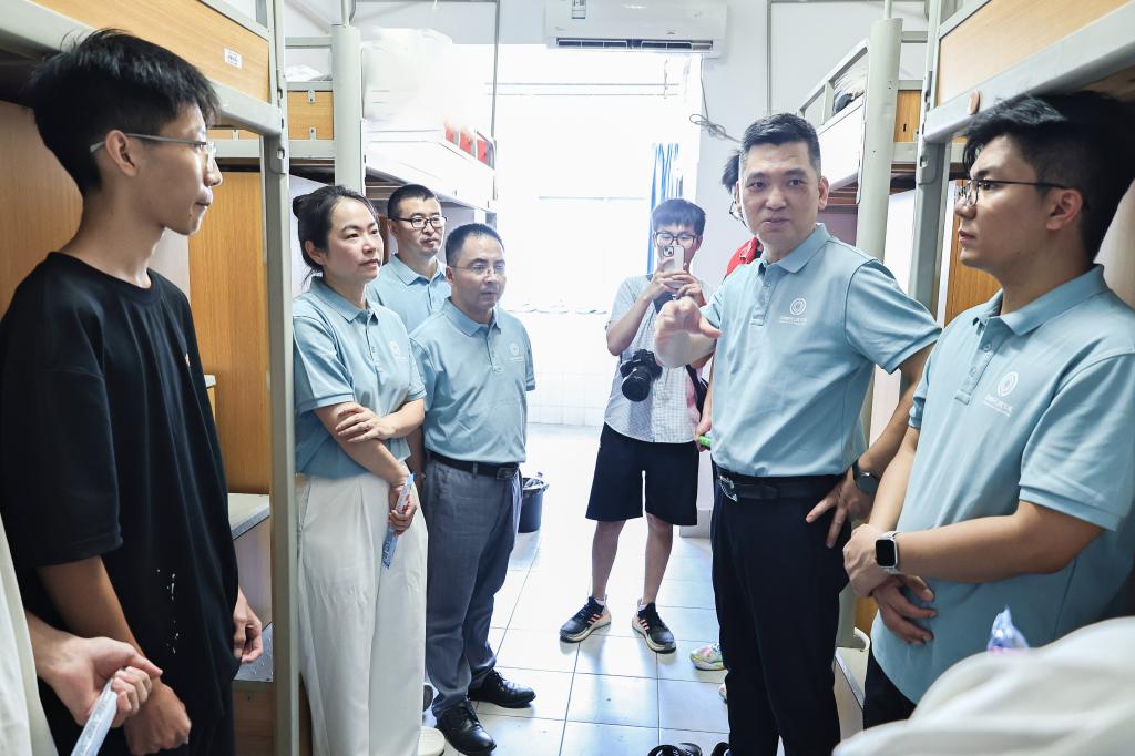 为确保迎新工作的高效有序,学院提前制定了周密的迎新方案。报到当天,从信息注册、身份核验到物资领取,环节井然有序。志愿者和学长学姐们积极引导、细致解答,帮助新生完成各类手续,并协助行李搬运与生活指引。中国工程院院士、校长陈卫,副校长李兆丰及相关职能部门领导来到学院报到现场,与新生进行亲切交流,关切询问适应情况与生活所需,并参与现场互动体验活动。学院领导班子、辅导员、班主任深入新生宿舍走访,送上温暖的慰问与诚挚的祝福。从学业方向到生活细节,每一句话都饱含着对新同学的关怀与期待。