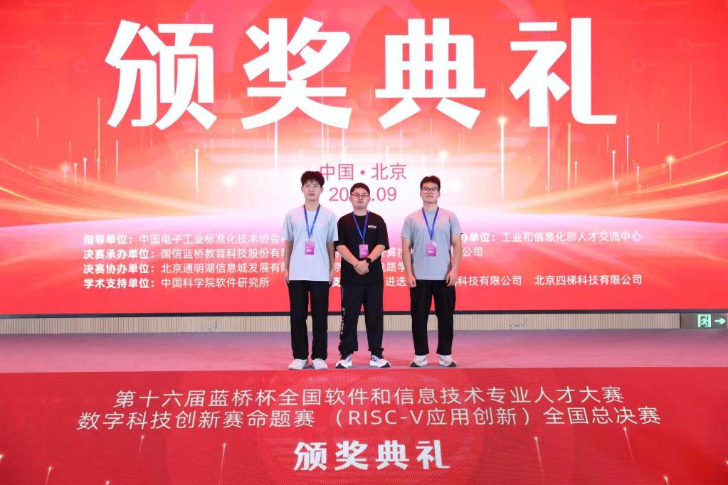 近日,由工业和信息化部人才交流中心主办、中国电子工业标准化技术协会RISC-V工作委员会承办的第十六届“蓝桥杯”数字科技创新赛命题赛(AIoT场景应用)全国总决赛在北京圆满落幕。在av片 刘相、马浩老师指导下,由李佳澳、付云鹏、刘康硕三位本科生组成的团队,凭借面向工业互联网智能制造场景研发的作品《二维码导航自动顶托AGV小车》,荣获全国一等奖,为学校在AIoT应用创新领域再添佳绩!