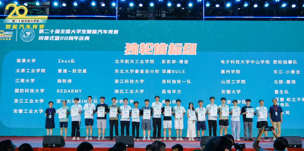 7月25日至27日,华东赛区竞赛在南京信息工程大学举行。我校代表队发挥稳定,一举夺得一等奖6项、二等奖2项。缩微光电组、平衡轮腿组、独轮信标组、极速越野组、气垫越野组和智能配送组六支队伍荣获赛区一等奖,成功拿到全国总决赛入场券。8月18日至20日,全国总决赛正式打响。六支队伍积极总结区域赛经验,持续优化车辆性能与控制策略,最终再度斩获2项全国一等奖和4项全国二等奖。“独轮侠”队凭借出色表现摘得独轮信标组全国总冠军。我校首次参与智慧配送创意组的“仓鼠快递”队表现同样亮眼,以全国第七名的成绩斩获一等奖。