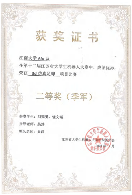 脚踏星辰,继续前行。深知纸上得来终觉浅的道理,专业知识在实践中才能发挥价值。在学长的推荐下,他加入了机器人俱乐部,并加入3D足球组,以代码脚本驱动机器人进行对抗式足球比赛。从小白开始,读懂代码,简单调节参数,修改合作策略,优化步态、踢球动作参数,重新设计动作等等。最后,他成为项目的负责人,在两年的项目学习中,实现了该项目的重要突破,获得RoboCup机器人大赛中国赛三等奖。