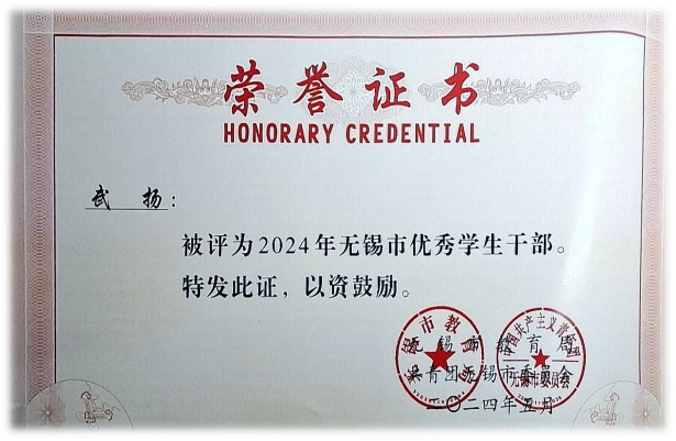 荣获无锡市优秀学生干部