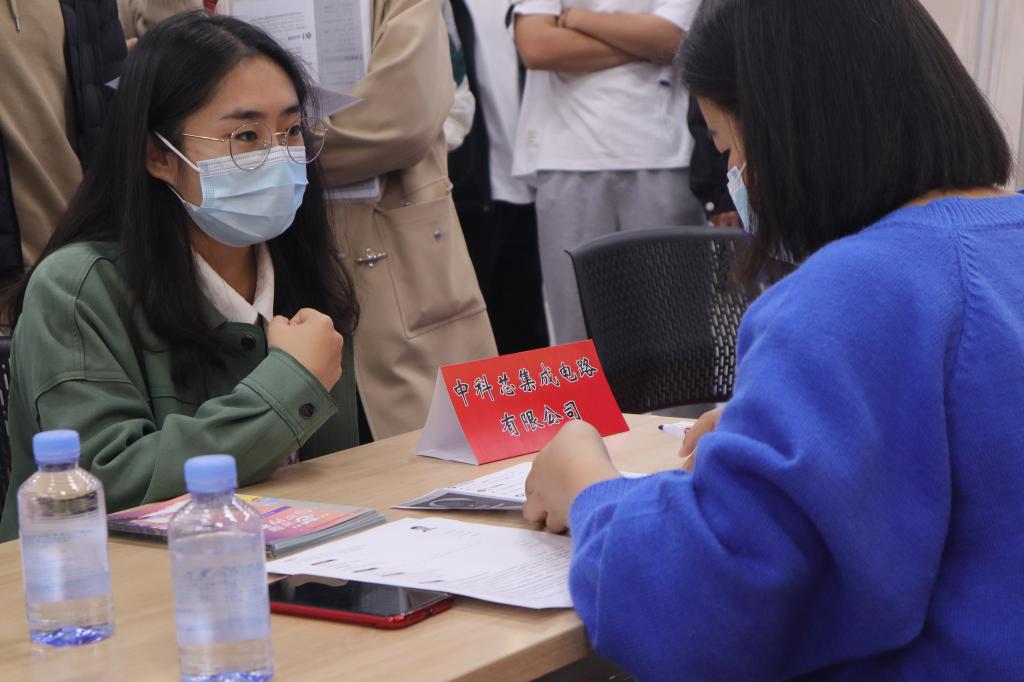 招聘会期间,参会企业通过播放企业宣传片、集中宣讲等形式,为同学们详细介绍企业情况、人才需求、职业发展等,帮助同学们高效选择合适的岗位。用人单位诚意满满、求贤若渴,耐心介绍相关岗位技能要求、职位培养方向及薪酬待遇等;参会学生积极向用人单位递出简历,就个人能力、专业特长、工作内容、发展前景等方面与用人单位进行高效沟通,寻找适合自己的就业岗位。很多企业与学生现场达成了初步意向。同时,招聘会热烈的氛围还吸引了很多非毕业班的学生前来观摩,提前了解企业招聘流程及要求,为今后求职就业积累经验。来自电子信息专业2023届硕士研究生郭倩莹同学表示:“此次招聘会专业对口岗位特别多,已经投了四家公司,希望能在这里找到心仪的工作。”恒为科技(上海)股份有限公司招聘专员李雅表示:“在疫情防控的当下,此次招聘会组织有力,服务到位,目前有十几位同学来我这里投简历了,不虚此行,收获满满。”