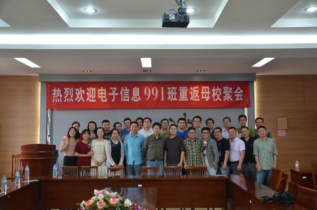 物联网学院B301成功举办。25名校友再叙校园之情,共谋母校发展,气氛友好热烈。物联网学院党委书记倪松涛,学院社会资源小组秘书张志新,原电子信息991班班主任周黎、辅导员张相胜、专业教师高美凤也出席了本次聚会。