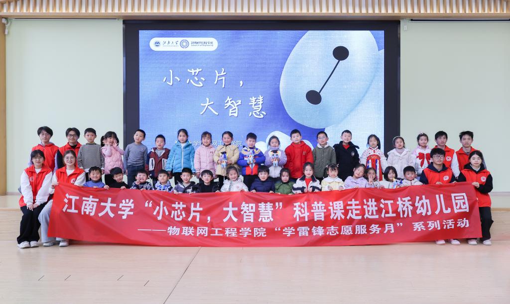 “雷锋”特称团支部走进无锡市新吴区江桥幼儿园,为孩子们带来一堂奇妙有趣的《小芯片,大智慧》公益科普课,在孩子们心中播下科技梦、强国梦的种子。